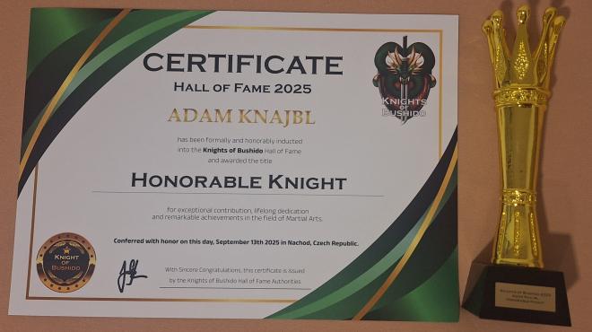 Včera, 13. 9. 2025, se náš mistr karate Adam Knajbl (IV. Dan) z oddílu EMESKAI zúčastnil mezinárodní akce Knights of Bushido Hall of Fame, která se konala v Náchodě.